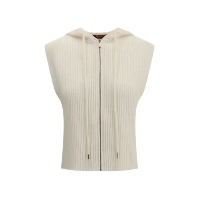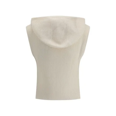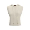 The Mescal Hooded Gilet by MaxMara Studio blends comfort and sophistication in a pure, minimal form. The wool and cashmere knit softly embraces the body, while the metal zip and adjustable drawstring add refined, subtle detail. A versatile piece designed to bring warmth and elegance to any moment of the day.