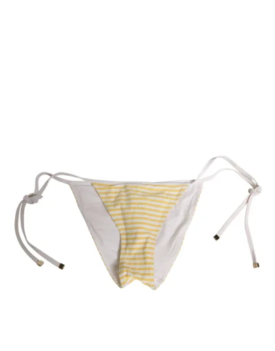 Gorgeous brand new, 100% Authentic Dolce & Gabbana bikini bottom, crafted in Italy. Designed with chic white and yellow stripes, side tie closures, and detailed with embroidered “Porto Cervo Ti Amo Dolce & Gabbana” logo at the back, this piece combines elegance with a playful summer vibe.
