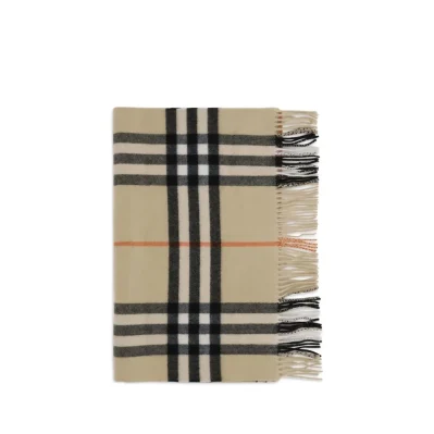 The Wide Check Cashmere Scarf by Burberry combines the luxury of fine cashmere with the unmistakable House check pattern. Featuring a rectangular shape, fringed edges, and a subtle logo tag, it is a timeless accessory that elevates any outfit with elegance.