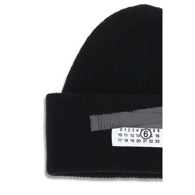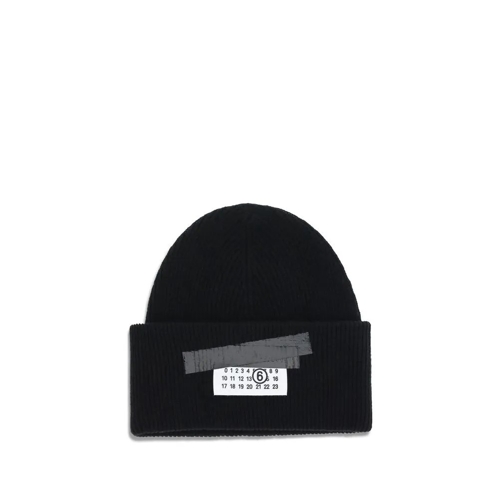 The Wool-Blend Beanie by MM6 Maison Margiela combines functionality with iconic style. Made from ribbed wool-blend fabric with a turned-up brim, it features the brand’s numeric label covered by a black adhesive tape — a detail inspired by archival pieces altered with packing tape. An essential accessory with a conceptual twist.