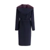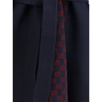 Gucci’s wool Coat is a long style with a timelessly elegant design. Featuring a hood and matching removable and knotted sash, it combines practicality and style. The two side welt pockets add functionality to the garment, while the iconic Gucci monogram on the inner panel contrasts with the monochrome pattern on the exterior, creating a refined and distinctive play on details. A coat that best expresses the house’s signature style.