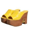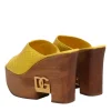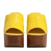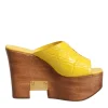 Yellow Leather Wood Mule Wedge Slides Shoes