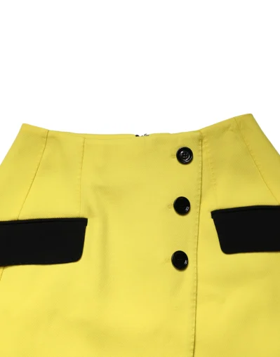 mini skirt is crafted from luxurious yellow wool and detailed with front button accents. The high-waist design enhances a flattering silhouette, offering a bold yet elegant touch to any ensemble.
