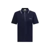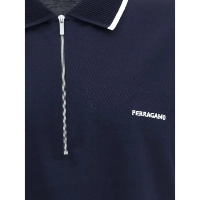 Cotton polo shirt by Ferragamo has a refined and contemporary design. The classic collar is defined by a contrasting profile, while the zipper front closure adds a modern touch. The iconic Ferragamo monogram, embroidered in contrast on the chest, signs the garment with discreet elegance. Ideal for polished yet casual looks.