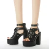 Product Description : - Style : European and American-inspired shoes with short stout heel - Pattern : Solid color in black - Material : Artificial PU upper with patent leather finish, microfiber lining - Details : Round toe, back zipper closure, metal and rivet accents - ... Read More